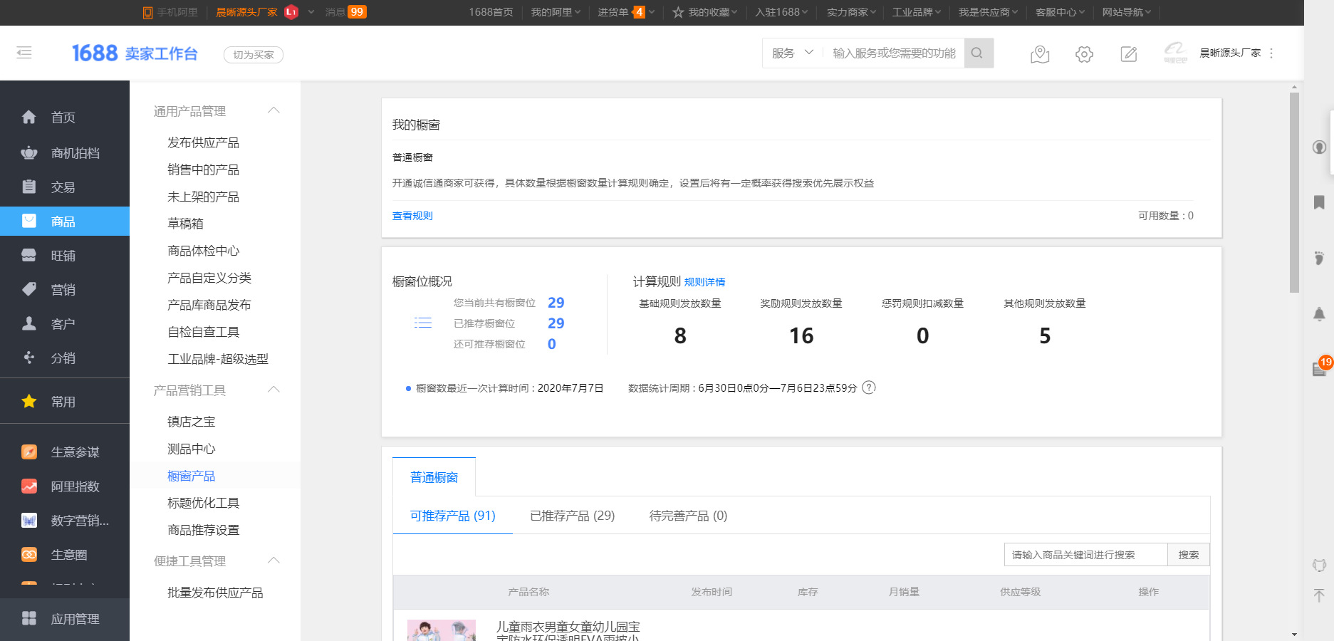 商品橱窗设置后将有一定概率获得搜索优先展示权益,自然排名上升,获得更多流量。我们可以通过阿里后台————商品————橱窗商品去添加相对应的商品。
