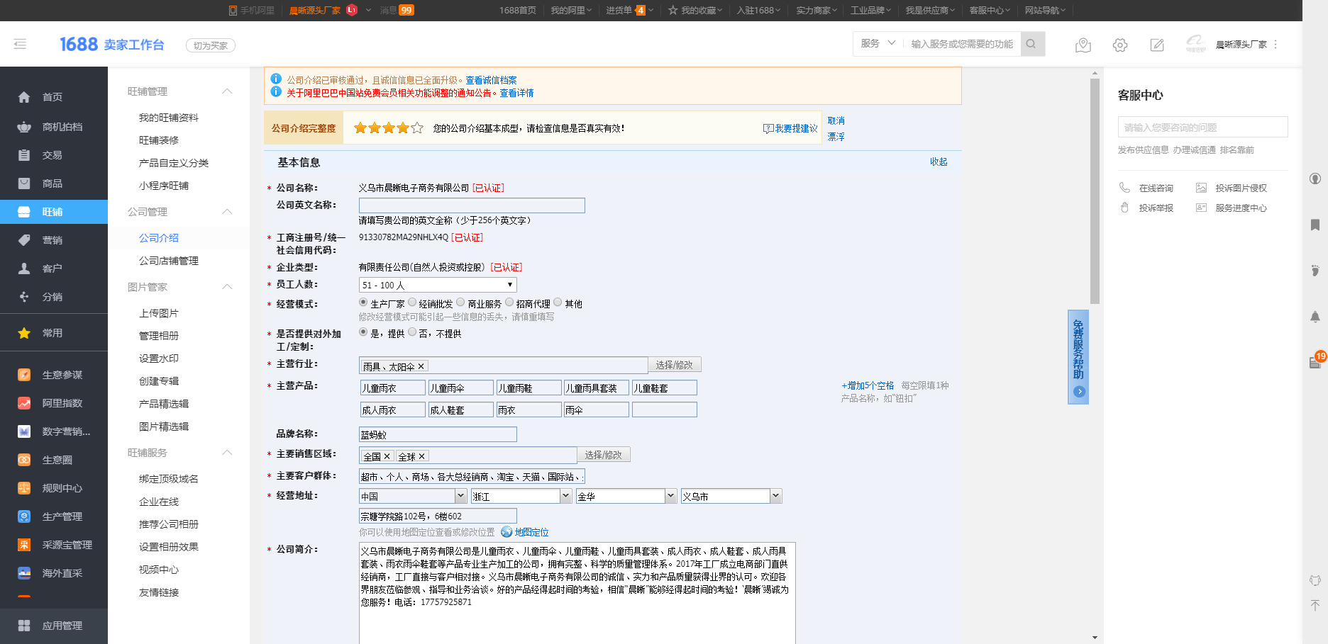 公司介绍完整度越高,越容易被系统抓取,从而提高公司搜索排名,增加公司的展现量。
